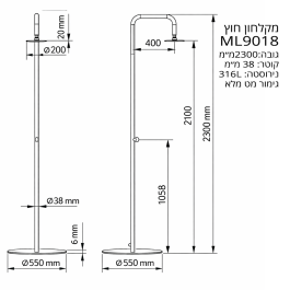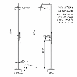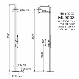 • מקלחון חוץ קר, נירוסטה 316- ML9018