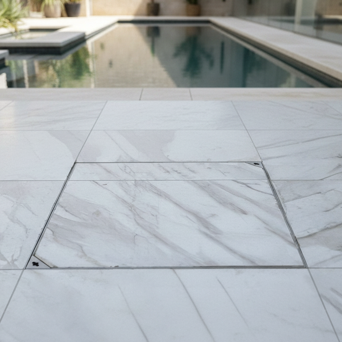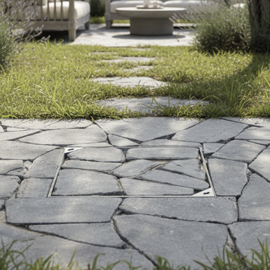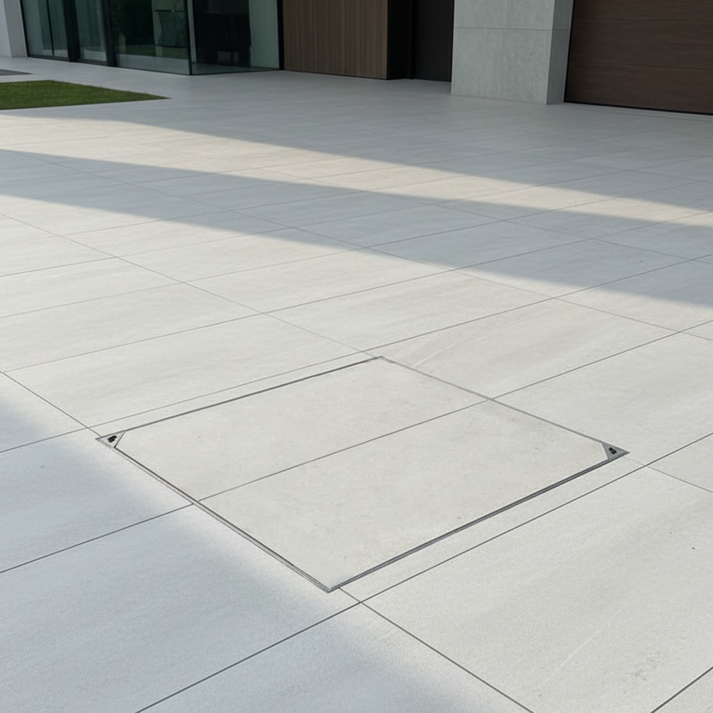 מכסה לריצוף מעל שוחת ביוב למראה נקי ואיכותי.