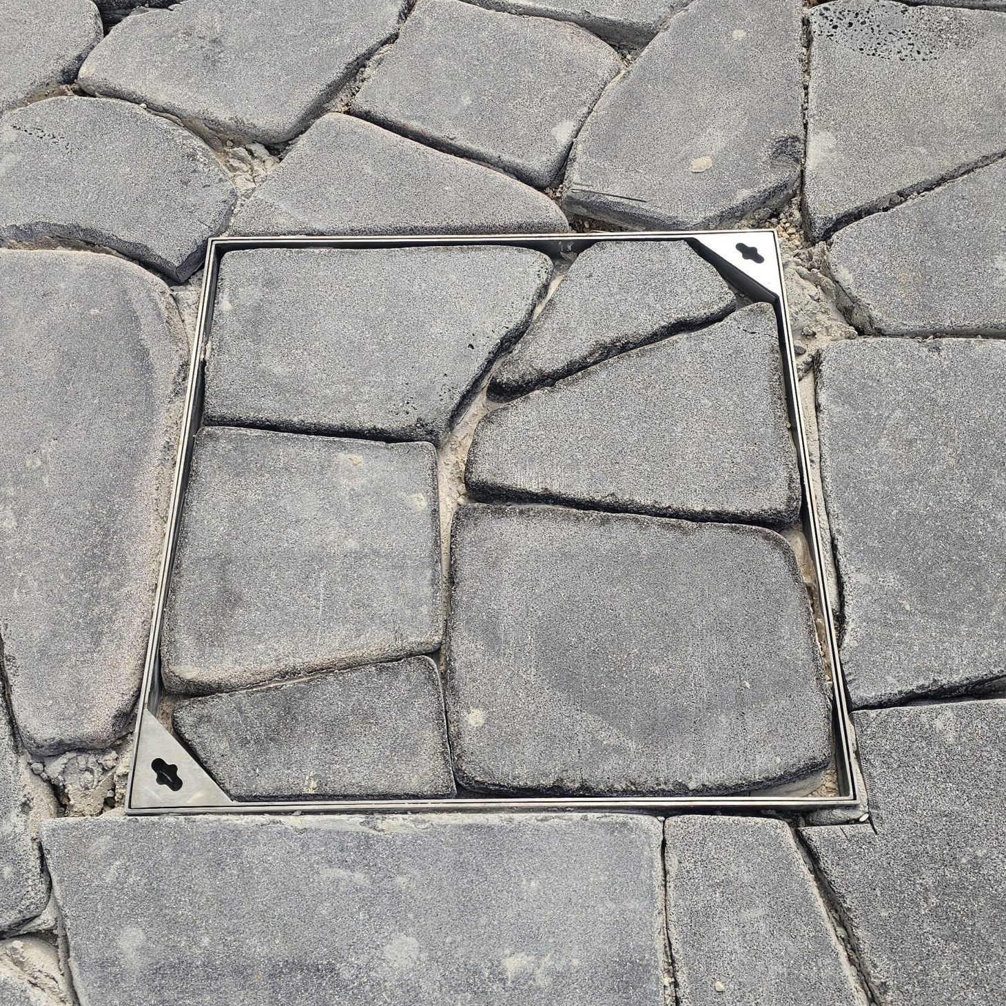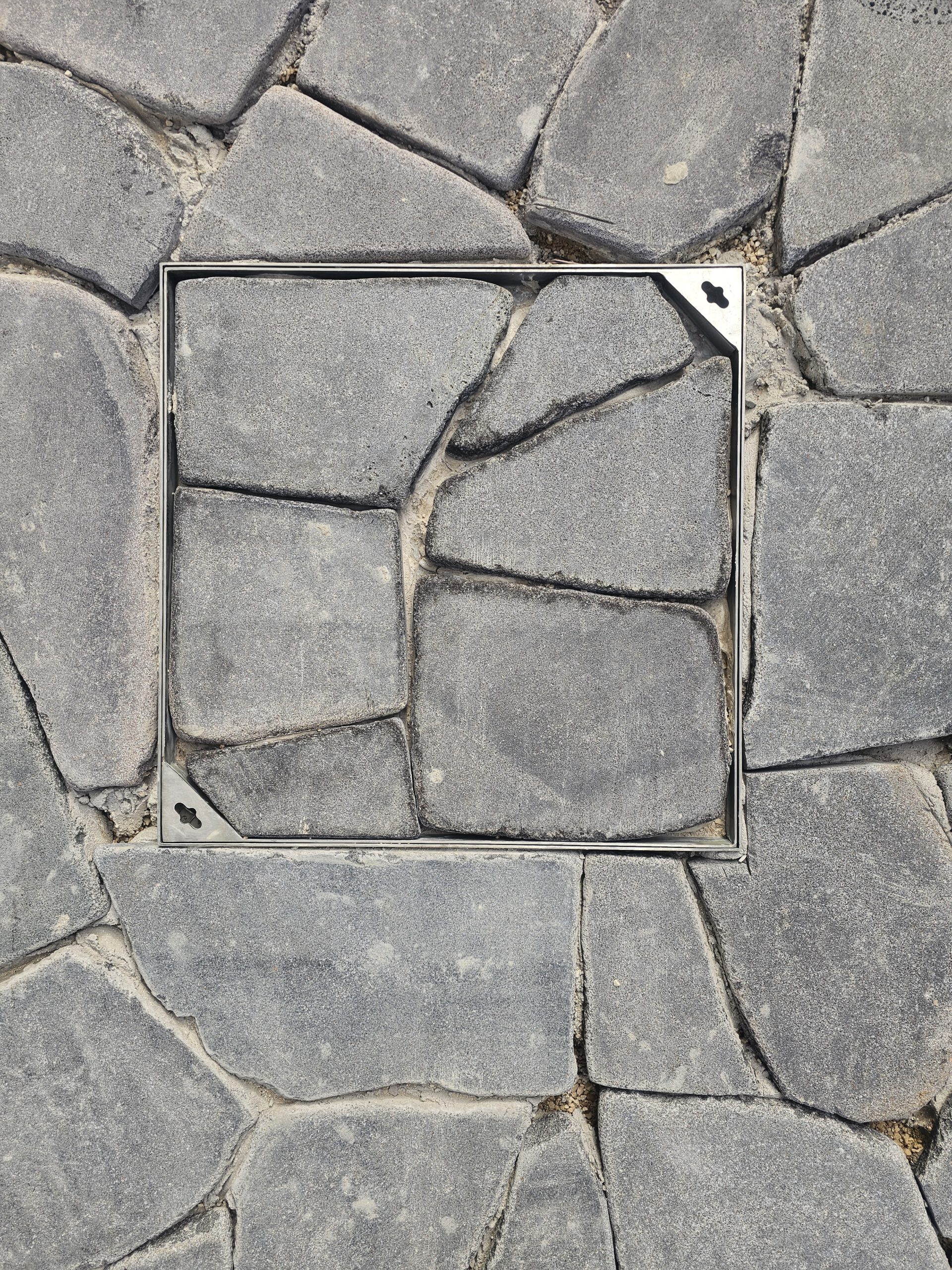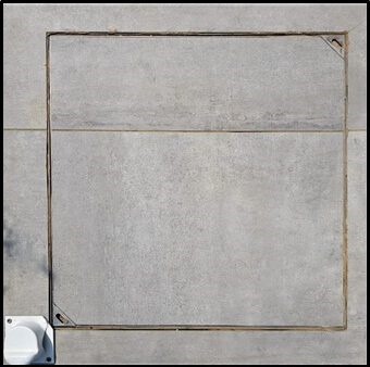 מכסה לריצוף מעל שוחת ביוב למראה נקי ואיכותי.