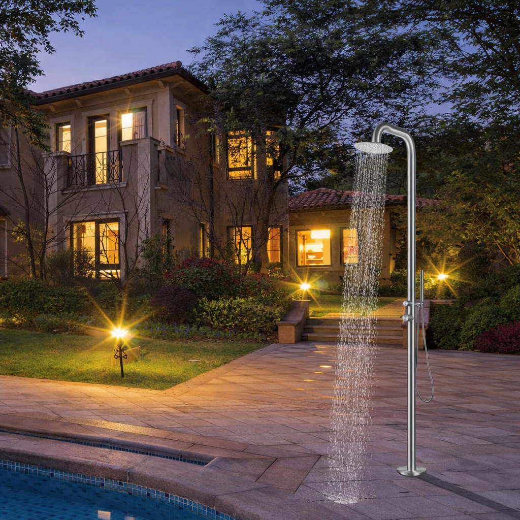 מקלחוני חוץ נפוצים במיוחד בבתים פרטיים עם בריכות, בגינות יוקרה ובפרויקטים אדריכליים בהם נדרש פתרון רחצה חיצוני נוח ואסתטי.