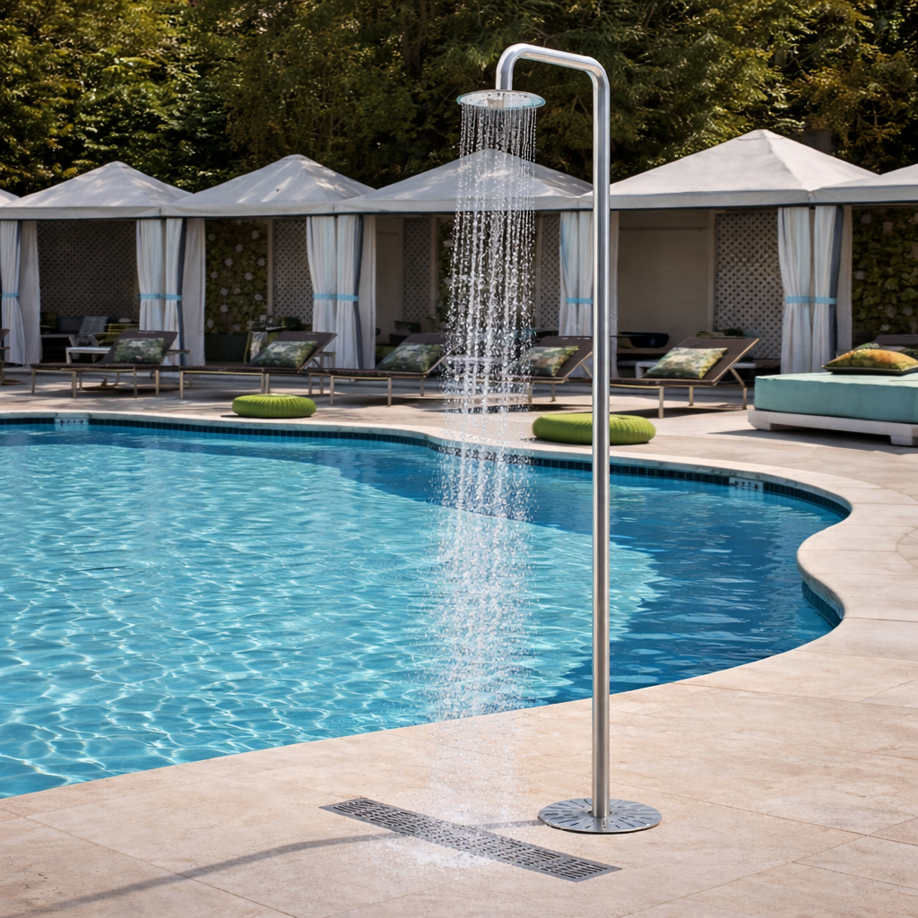 - מקלחון חוץ מנירוסטה 316 דגם ML9008 פתרון רחצה איכותי לבריכה ולגינה
