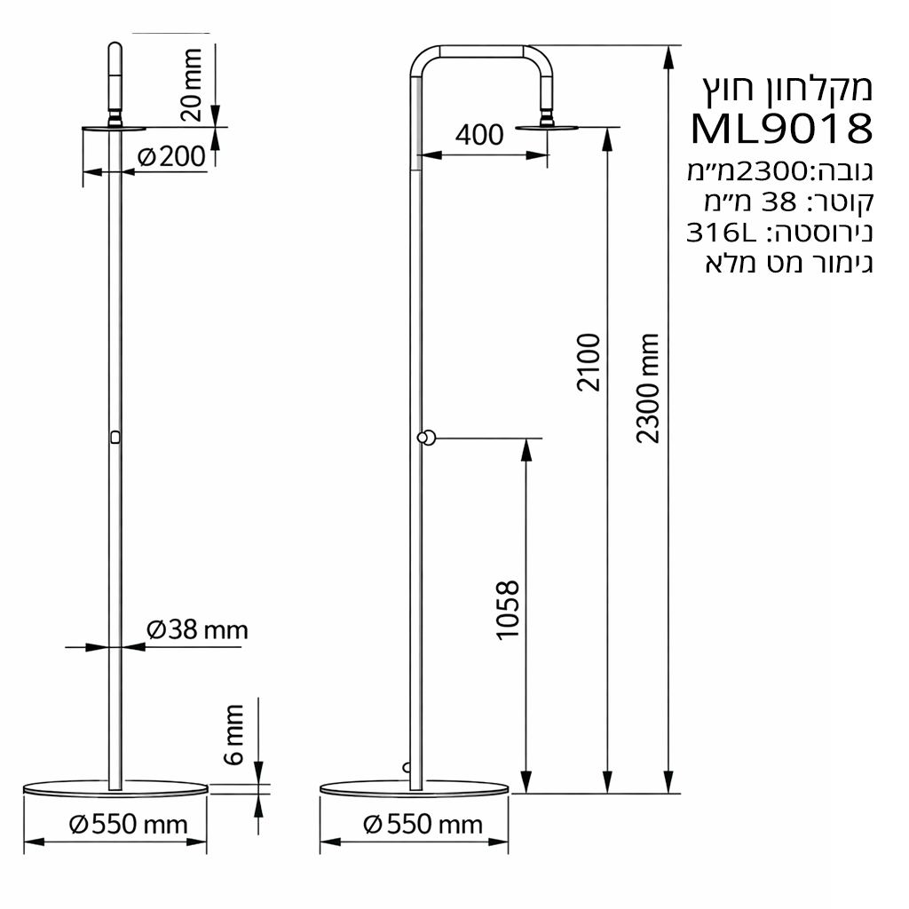 - מקלחון חוץ מנירוסטה דגם: ML9018